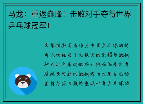 文章摘要:在竞争激烈的体育赛事中,卫冕之路往往充满挑战,充满了不同的考验与未知的变数。然而,对于那些拥有强大实力和精神的冠军来说,卫冕不仅仅是重复过去的辉煌,更是新一轮传奇的起点。本文将通过四个方面详细阐述“卫冕之路再创辉煌,冠军荣耀继续书写传奇”这一主题。首先,我们将探讨卫冕之路的艰难与不易,分析冠军如何突破重重困难,保持竞争力;接着,文章会分析不断创新和调整策略的重要性,解释冠军如何通过持续的...