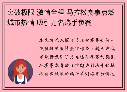 随着中国田径选手的不断崛起,近年来在国际赛场上的表现令人瞩目。在一场又一场的激烈角逐中,中国选手刷新了多个田径项目的纪录,不仅展示了个人的卓越实力,也为中国田径事业的发展注入了新的动力。尤其是在近期的国际大赛上,激烈的竞争和选手们的超常发挥引发了广泛关注和热议。本篇文章将从四个方面详细分析这一现象,具体探讨中国选手如何刷新多项纪录、赛场竞争的激烈程度以及未来田径发展的潜力。1、中国选手刷新多项纪录...